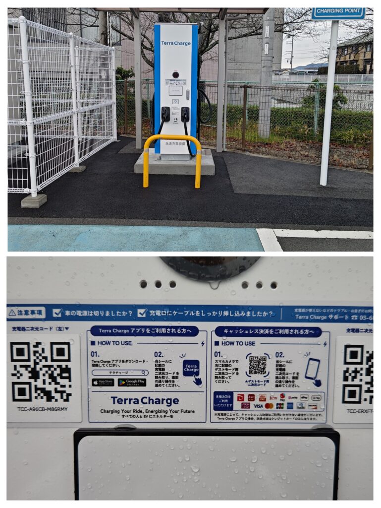 当初の予定より遅くなりましたが、メーカーによる試験が終わりEV充電器が使用できるようになりました